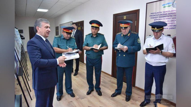 Prezident Shavkat Mirziyoev Olmazor tumanidagi 2-sonli ichki ishlar bo`limiga tashrif buyurdi.