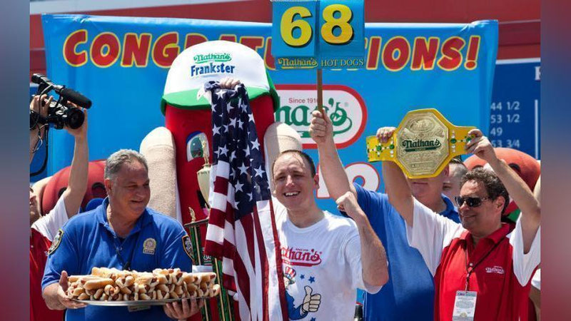 Amerikalik 10 daqiqa ichida 74 ta xot-dog eb qo`ydi (video)