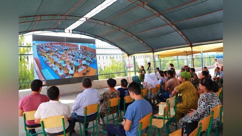 Abiturientlarning ota-onalari uchun salqin joylarda joylar tashkil qilindi va u erda katta hajmli monitorlar yordamida test jarayonlari onlayn ko`rinishda yoritib borildi.