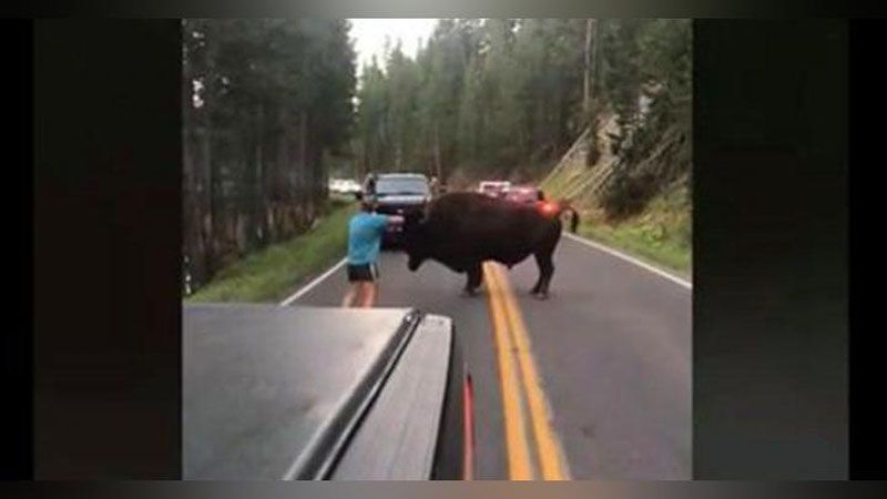 55 yoshli Reymond Rinke yo`l o`rtasida mashinasidan tushib, bizonning jig`iga tega boshlagan. Bizon erkakka birnecha marta hujum qilib ko`rdi, ammo Rinke qochib qolishga muyassar bo`laverdi.