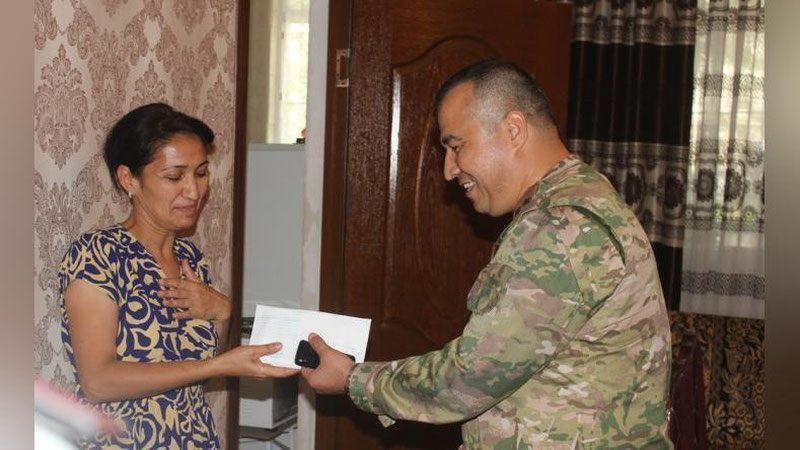 Buyruqqa ko`ra, xizmat burchini bajarish vaqtida halok bo`lgan harbiy xizmatchilarning oila a`zolariga moddiy yordam uchun ajratilgan pul mablag`lari joylarda mas`ullar tomonidan topshirilmoqda.