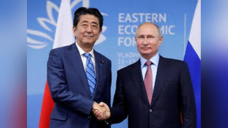 Safari chog`ida u mamlakat prezidenti Vladimr Putin bilan uchrashgan. Vladivostok shahrida har ikkala davlat rahbari Mazda zavodiga tashrif buyurishdi.Shundan so`ng, o`tkazilgan yig`ilish chog`ida Yaponiya va Rossiya harbiylarining ilk hamkorligi masalasi muhokama qilindi.
