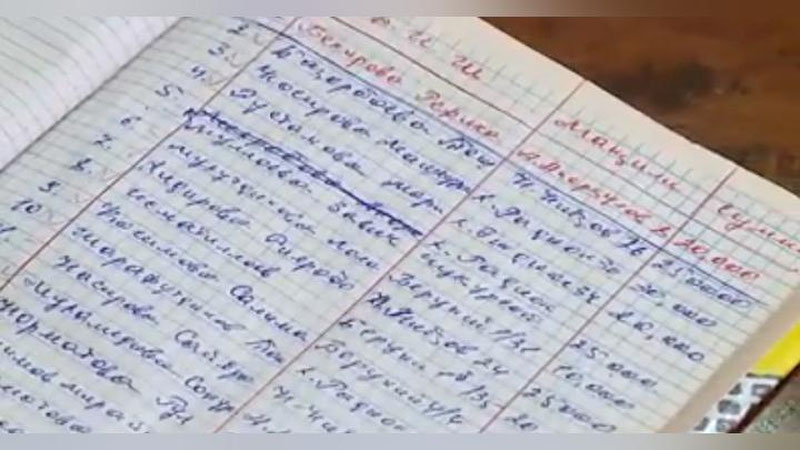 X.B. tomonidan nafaqaxo`rlardan paxta yig`im terimi uchun yig`ilgan jami 1.586.000 so`m naqd pullar va pul bergan nafaqaxo`rlar ro`yxati tuzilgan daftar taqdim etildi.
