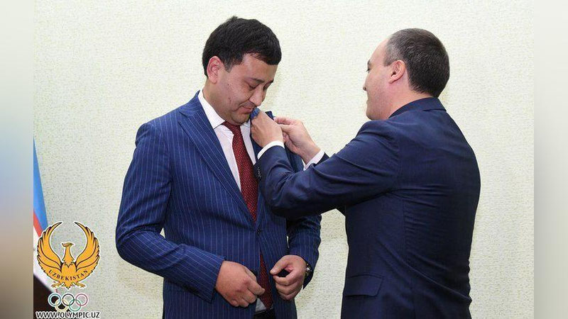 O`zbekiston Respublikasi Jismoniy tarbiya va sport vaziri Dilmurod Nabiev Milliy olimpiya qo`mitasi prezidenti Umid Ahmadjonovga «Jismoniy tarbiya va sport a`lochisi» ko`krak nishonini topshirdi. Ushbu nishon O`zbekiston Respublikasi Vazirlar Mahkamasining 2018 yil 3 maydagi qaroriga asosan ta`sis etilgan.