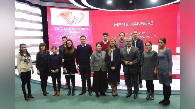 O`zbekiston yoshlar ittifoqi Markaziy Kengashi hamda Turkiyadagi «LIV Hospital» klinikasi bilan hamkorlikda joriy yilning 18-oktyabr kuni «Yoshlar press klubi» da «Ko`krak bezi saratoniga qarshi birga kurashamiz» shiori ostida tibbiy maslahat kuni tashkil etildi. Unda «LIV Hospital» klinikasi onkomammolog jarrohi, professor – Ertigrul Gazio`g`lu ko`krak bezi saratoni, uning oldini olish va davolash bo`yicha taqdimot qildi. Tajribali tibbiyot vakili ko`krak bezi saratonining belgilari sifatida a`zodan turli xil ajralmalar ajralishi, terining o`zgarishi, doimiy og`riq, yo`tal va nafas olishning qiyinlashuvi, shuningdek, holsizlik, vazndagi o`zgarishlar va qo`ltiqda o`simta paydo bo`lishi hamda ko`krak qismi o`lchamidagi o`zgarishlarda kuzatilishini ta`kidladi.