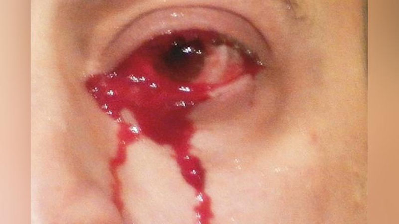 52 yoshli erkak ko`zidan qonli yosh oqayotganidan shikoyat qilib tez tibbiy yordam chaqirgan. Erkak hech qanday og`riq yo`qligini, ko`zi yaxshi ko`rayotganini aytgan. Ammo jiddiy tekshiruvlardan so`ng uning ko`zida ko`z soqqalarini o`rab turuvchi membrananing yallig`lani va gemolakriya – ko`z yoshlar qon bilan oqishi xastalagini aniqlangan.