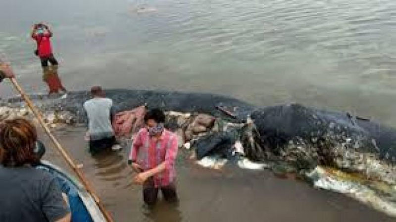 Indoneziyaning Sulavesi orolida qirg`oqqa o`lik kit chiqib qolgan, deya xabar bermoqda Euronews.com nashri.