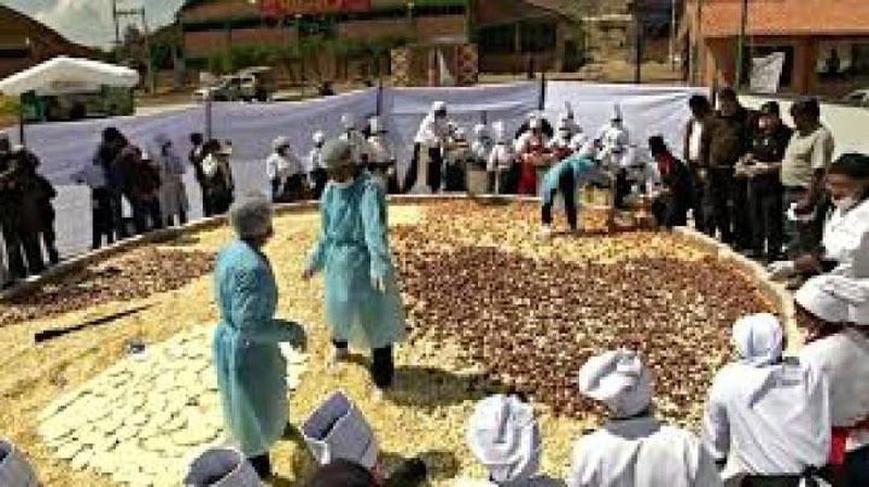 Charkikan Boliviyaning milliy taomi hisoblanadi. Buning uchun 2000 kg. jo`xori, 500 kg. kartoshka, huddi shuncha pishloq, 10 ming dona tuxum va eng asosoiy maxsulot lama go`shtidan foydalanildi. Taomni pishirish jarayonida 100 dan ortiq oshpazlar ishtirok etishgan. Tashkilotchilarning so`zlariga ko`ra, bu tadbir lama go`shtini ommalashtirish maqsadida tashkil etilgan.