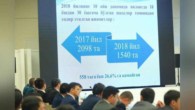 O`zbekiston yoshlar ittifoqi Markaziy Kengashi, Ichki ishlar vazirligi, Milliy gvardiya, Oliy sud, Mudofaa vazirligi, Adliya vazirligi, Vazirlar Mahkamasi huzuridagi Din ishlari bo`yicha qo`mita, Fuqarolarni o`zini o`zi boshqarish organlari faoliyatini boshqarish bo`yicha respublika kengashi o`tkazgan tadbirda joriy yilning 10 oyida voyaga etmaganlar sodir etgan jinoyatlar o`tgan yilga nisbatan 426 taga kamaygani ma`lum qilindi.