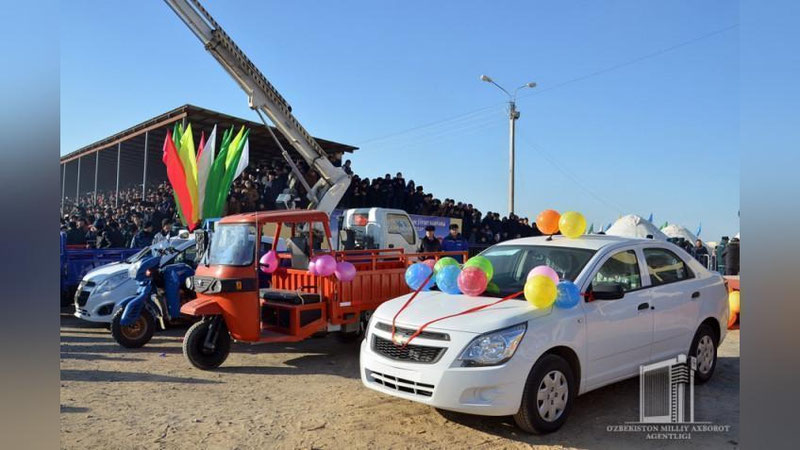 Otchopar maydoni bo`ylab otda bir, besh, etti, o`n aylanish musobaqasini ko`pchilik qiziqish bilan kuzatdi. O`n aylanish bo`yicha marraga birinchi bo`lib Qorao`zak tumanidagi 3-umumta`lim maktabining 1-sinf o`quvchisi Aysuluv Shalabaeva etib keldi. G`olibaga bosh sovrin – Cobalt avtomashinasining kaliti tantanali topshirildi.