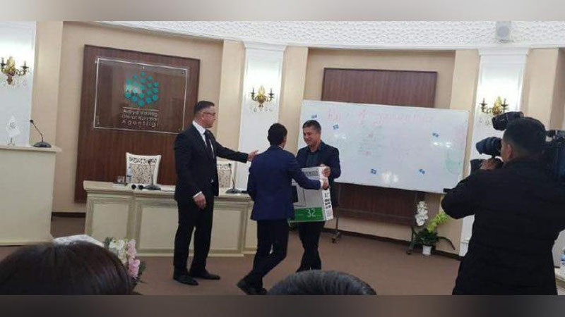 Bir yillik bilan o`tkazilgan tadbirda elektron davlat xizmatlaridan 297 marta foydalanib kelgan fuqaro Radik Ergashev g`olib deb topildi va unga esdalik sovg`a — televizor topshirildi
