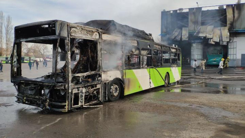 Avtosaroydagi yong`inda MAN va Mercedes-Benz avtobuslari yonib ketdi (video)
