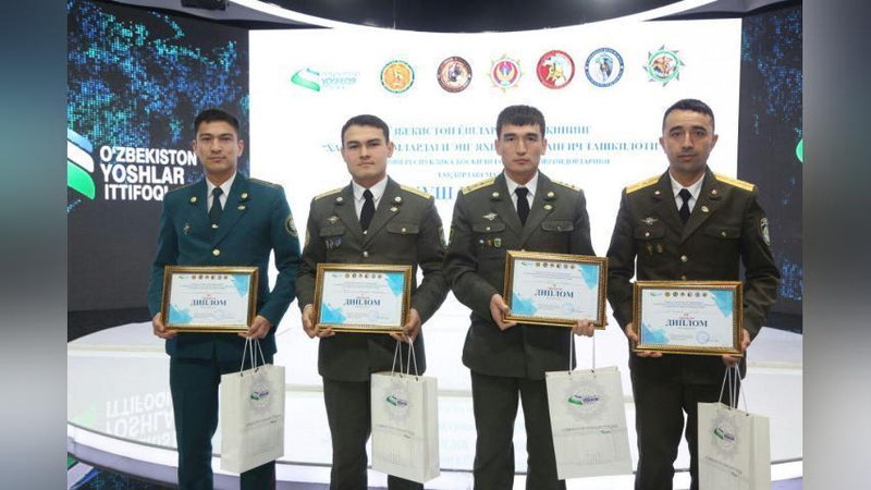 O`zbekiston yoshlar ittifoqining «Harbiy qismlardagi eng yaxshi boshlang`ich tashkiloti» tanlovining Respublika bosqichida 1-o`rinni qo`lga kiritgan boshlang`ich tashkilotlar etakchilari nomzodi «O`zbekiston belgisi» ko`krak nishoni va boshqa davlat mukofotlariga tavsiya etiladi.