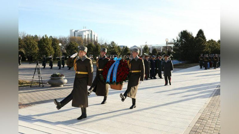 Shundan so`ng davlatimiz madhiyasi yangradi. Faxriy qorovul vzvodi monument yonidan tantanali marsh sadolari ostida o`tdi.