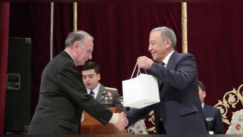 O`zbekiston prezidenti nomidan oltin soat bilan VETERAN jangchi-faxriy va nogironlari birlashmasi raisi Tal`at Muradov, «Boevoe bratstvo bez granis» xalqaro ittifoqi oliy kengashi a`zosi, general-leytenant Ruslan Aushev, Rossiya fan va madaniyat markazi rahbari Viktor Shulika, Rossiya Federasiyasi kengashi a`zosi, senator Frans Klinsevich, Afg`oniston urushi veteranlari ittifoqi raisi Mixail Mokano, MDH davlatlari hukumat rahbarlari Kengashi huzuridagi jangchi-baynalmilalchilar ishlari bo`yicha qo`mitasi raisi Aleksandr Kovalyov taqdirlandi.