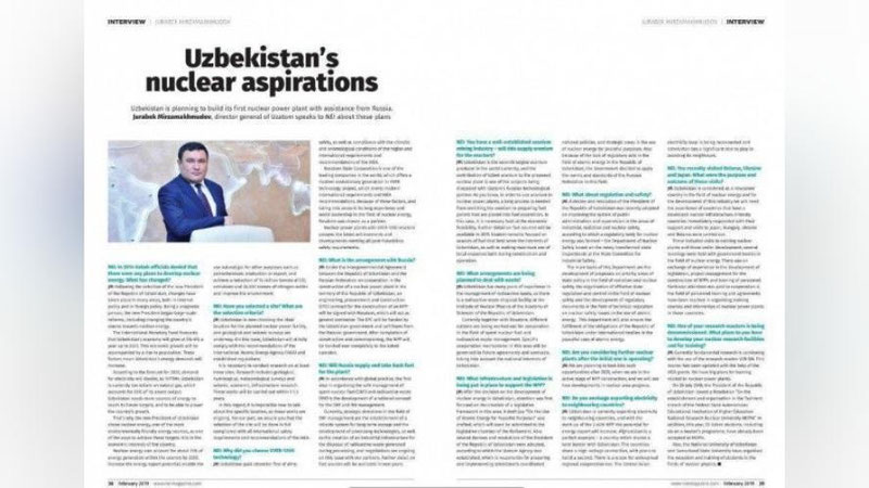 O`zbekiston tomonidan o`zining birinchi AES uchun VVER-1200 Rossiya texnologiyasini tanlanishi ham ushbu nashr uchun katta qiziqish uyg`otgan. «O`zatom» agentligi bosh direktori ta`kidlaganidek, «3+» VVER generasiyasi texnologiyasiga oid evolyusion loyiha hozirgi zamon xalqaro talablariga va MAGATE tavsiyalariga mosdir. Shu bois mazkur loyiha bo`yicha hamkor sifatida bu texnologiyani taklif etayotgan va atom energetikasi sohasida dunyoda etakchi hisoblangan «Rosatom» davlat korporasiyasi tanlangani bejiz emas.