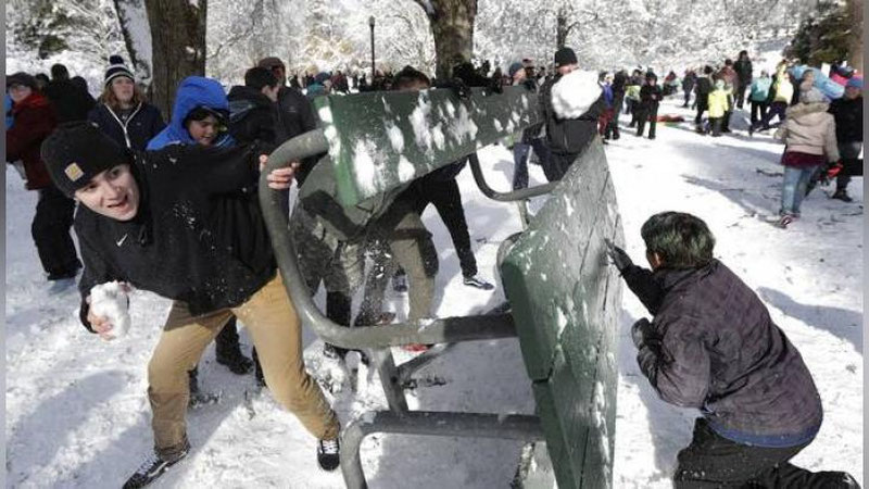 Ijtimoiy tarmoqlarda qishki ko`ngilochar o`yinlarga chaqiruvlar e`lon qilingan. Buning natijasida esa Takoma shahri markazida 3 ming kishi yig`ilgan. Odamlar guruhlarga bo`lingan holda ko`chalarda ommaviy tarzda qorbo`ron va shu kabi o`yinlarni tashkil qilishmoqda.