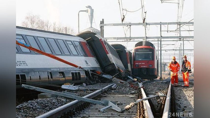 Qarama –qarshi yo`nalishda harakatlanayotgan 2 ta poezd bir-biri bilan to`qnashib ketgan. Natijada esa ulardan biri temir yo`l liniyasidan chiqib ketdi.