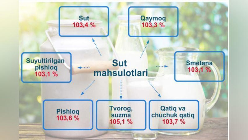 2019 yilning fevral oyida narxlarning o`sishi borasidagi etakchi uchlikning so`nggi pog`onasini sut mahsulotlari egallagan bo`lib, oy davomida narxlar o`rtacha 3,2%ga qimmatlashgan.