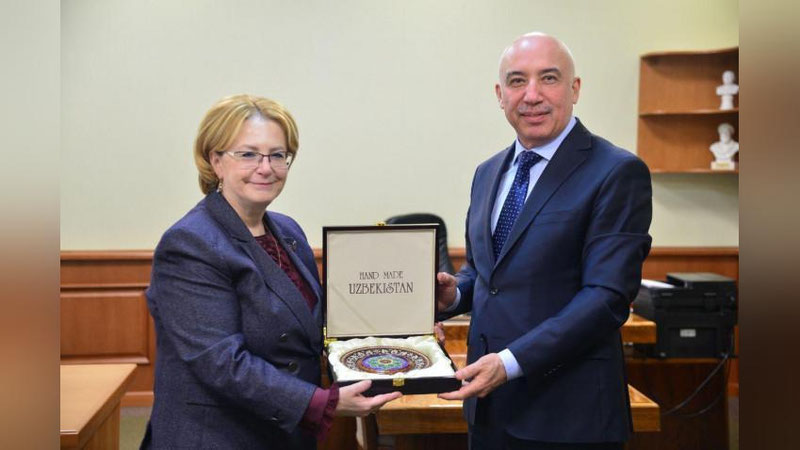 O`zbekiston Sog`liqni saqlash vazirligida delegasiya a`zolari bilan vazirlik rahbariyatining uchrashuvi bo`lib o`tdi. Do`stona ruhda o`tgan muloqotda O`zbekiston Sog`liqni saqlash vaziri Alisher Shodmonov va Rossiya Federasiyasi Sog`liqni saqlash vaziri Veronika Skvorsova tibbiyot va ta`lim sohasidagi hamkorlikni yanada rivojlantirish masalalari hamda bu boradagi yangi loyihalarni atroflicha muhokama qildilar, deb xabar berdi Sog`liqni saqlash vazirligi Jamoatchilik bilan aloqalar bo`limi.