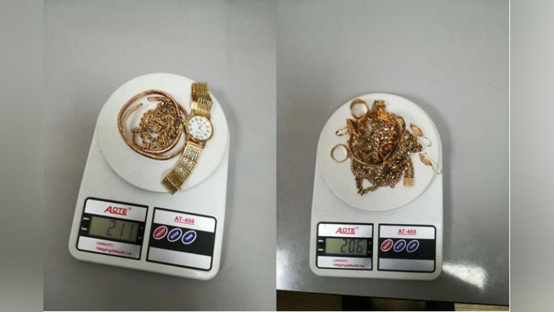 Aynan shu kunning o`zidayoq, fuqaro M.M.ning ham kirdikori fosh bo`ldi. Ya`ni u xolislar ishtirokida shaxsiy ko`rikdan o`tkazilganida, yo`lovchi bojxona deklarasiyasida ko`rsatilmagan va og`zaki so`rovda ma`lum qilinmagan, jami og`irligi 206 gramm sariq metalldan yasalgan, qiymati 61,8 million so`mlik turli-tuman zargarlik buyumlarini yashirincha olib o`tayotganligi aniqlandi.