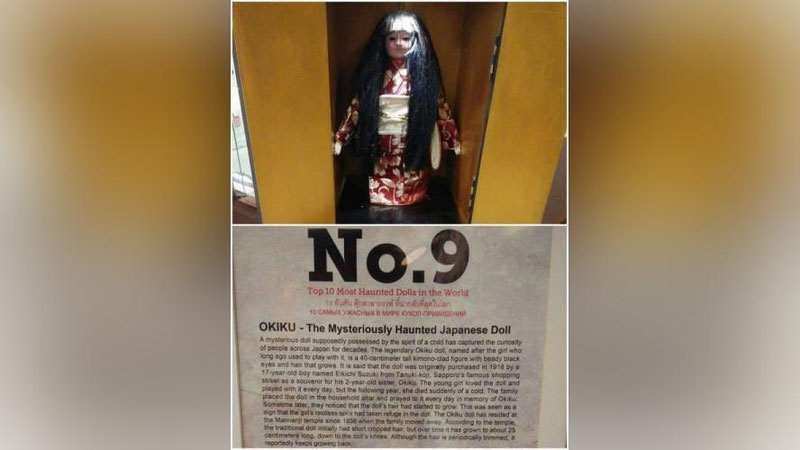 1918 yili bir bola singlisi uchun qo`g`irchoq sotib oladi. Qo`g`irchoq qizchaga shunchalik yoqib qoladiki, unga o`zining Okiku ismini beradi. Qizcha vafot etgach, qo`g`irchoqda g`alati holat kuzatiladi: uning sochlari tinmay o`saveradi. Sochlar qo`g`irchoqning tizzasiga etganda o`sishdan to`xtaydi. Ma`lum bo`lishicha, marhuma qizaloqning ham sochlari tizzasigacha bo`lgan ekan.