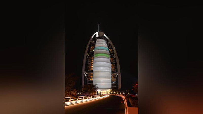 'Dubaydagi binolar O`zbekiston bayrog`i ranglarida namoyon bo`ldi'ning rasmi