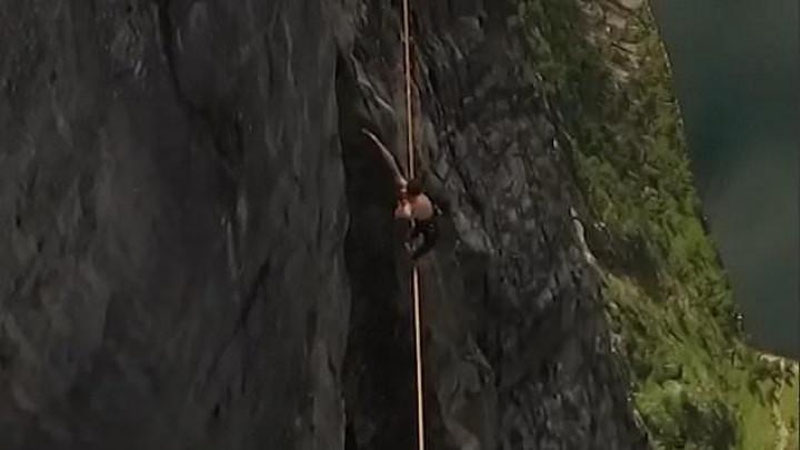Kyorag platosidagi qoyalar o`rtasiga arqon tortiladi va dorboz Espen Xatleskog (Espen Hatleskog) kanat bo`ylab 900 metr balandlikda yura boshlaydi. Shu on dorboz muvozanatini yo`qotadi va pastga qulaydi. Ammo ehtiyot trossi uni ushlab qoladi. Dorboz jarlik uzra osilib qoladi, lekin keyin yuqoriga ko`tarilib, yana tomoshasini davom ettiradi.