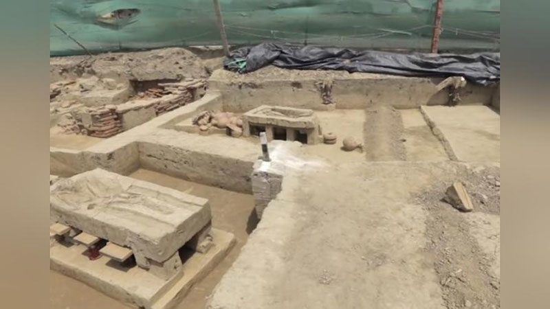 Dahmada turli artefaktlar bilan ikki jasadning qoldiqlari borligi aniqlangan.