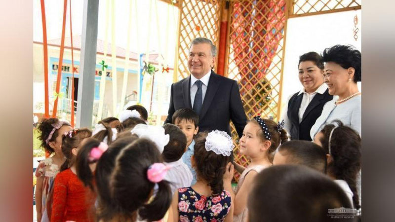 Prezident Shavkat Mirziyoev Ohangaron shahridagi «Qaldirg`och» davlat maktabgacha ta`lim muassasasiga tashrif buyurdi.