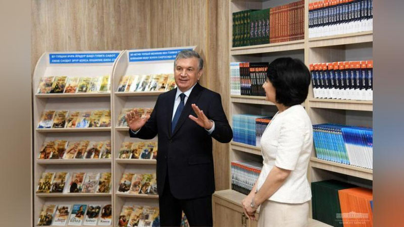 Shavkat Mirziyoev bog`dagi kutubxonani kirib ko`rdi.
