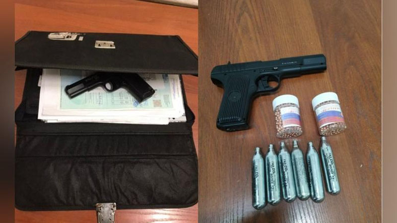 Natijada, uning salonidagi bardachok ichida bojxona nazoratidan yashirilgan, yo`lovchi bojxona deklarasiyasida ko`rsatilmagan va og`zaki so`rovda ma`lum qilinmagan, qiymati 2 274 000 so`mlik, 2 dona elim quti ichida 4,5 mm kalibrli “Vstrel” nomli pnevmatik o`qlar, 6 dona “GAZ SO2”nomli gaz balonchiklar va 1 bir dona “STALKER” nomli pistoleti borligi aniqlandi.
