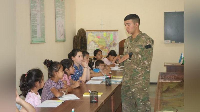 Markaziy harbiy okrug tasarrufidagi Jizzax viloyati Baxmal tumanidagi harbiy qismda muddatli harbiy xizmatni o`tayotgan oddiy askar Ibrohim Abduvaliev (Maykl) harbiy xizmatchilarning farzandlariga ingliz tilidan saboq bermoqda. Bu haqda Markaziy harbiy okrug matbuot xizmati ma`lum qildi.