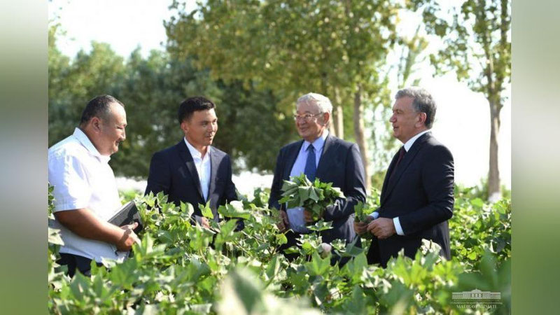 O`zbekiston Prezidenti Taxiatosh tumanidagi «Maded Botir» fermer xo`jaligi dalasida g`o`za rivojini ko`zdan kechirdi.