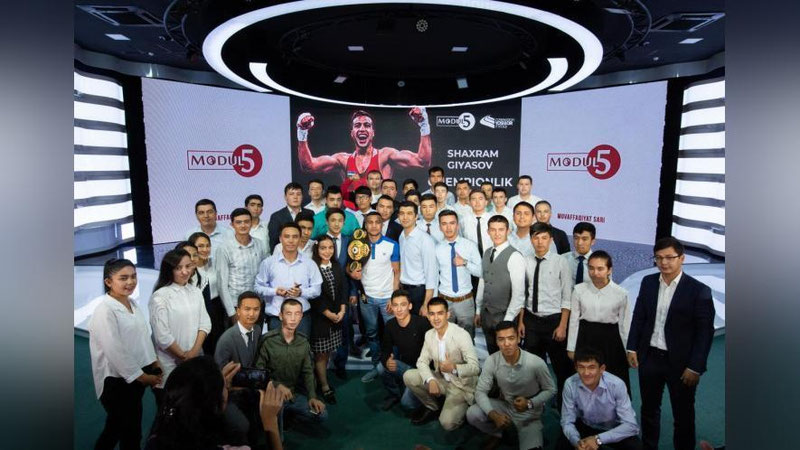 O`zbekiston yoshlar ittifoqi markaziy kengashida “Modul 5” loyihasining ilk qahramoni, professional ringda muvaffaqiyatli janglar o`tkazayotgan charm qo`lqop ustasi Shahram G`iyosov bilan uchrashuv tashkil etildi.