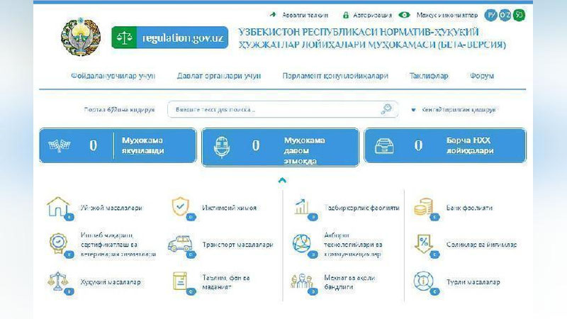 Hozirga qadar loyihabo`yicha takliflar soni 0 ni ko`rsatmoqda.
