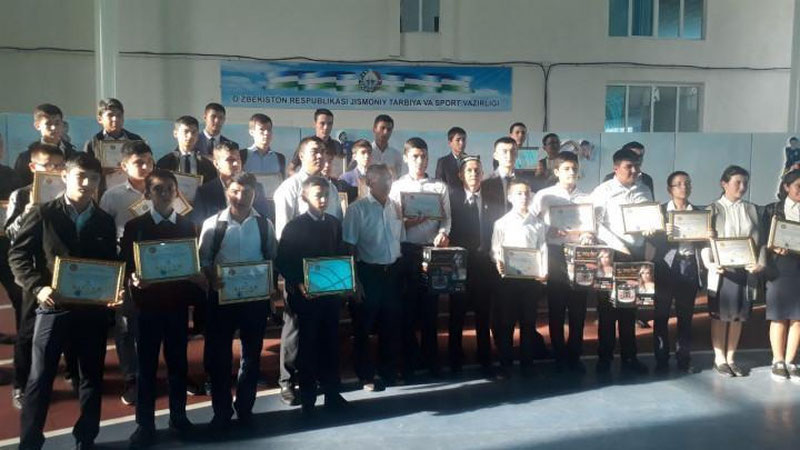 G`olib o`quvchilarga esdalik sovg`alari va faxriy yorliqlar topshirildi.