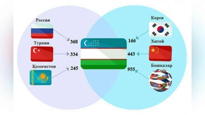 Rasmiy statistikaga ishonadigan bo`lsak, shu yilning to`qqiz oyida xorijiy kapital ishtirokida 2511 ta yangi korxona tashkil etilibdi. Ularning asosiy qismi doimiy hamkorlar sifatida aytiladigan — Xitoy, Rossiya, Turkiya, Qozog`iston, Koreya Respublikasi rezidentlari hissasiga to`g`ri kelgan.