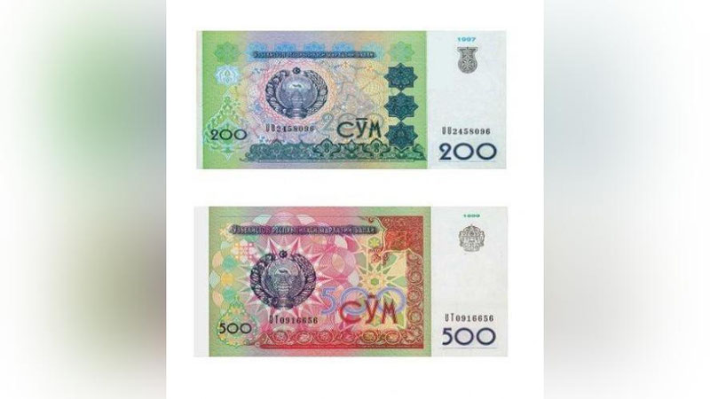 Известно, что банкноты 200 сум образца 1997 года и 500 сум образца 1999 года с 1 июля 2020 года утратили свою силу в качестве законного платежа (согласно положению Министерства Юстиции рег. №3014 от 19 мая 2018 г.)