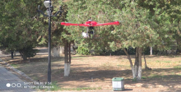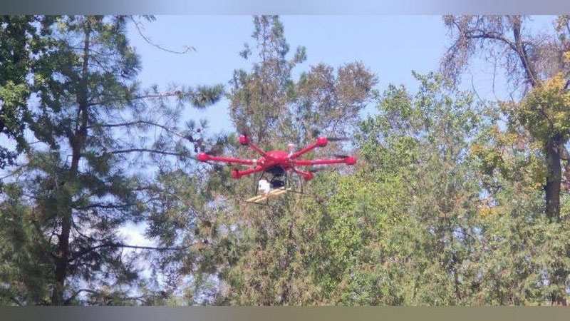В столичном парке "Дустлик" (бывш. парке имени Бабура) провели эксперимент по распространению трихограмм с помощью дрона.