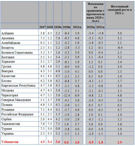 При условии, что карантин не будет введен повторно по всей стране, рост ВВП Узбекистана прогнозируется на уровне от 4,8% до 5,0% в 2021 г.