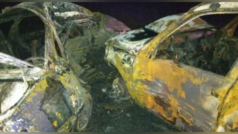 В результате столкновения произошел пожар, который полностью уничтожил автомобили.