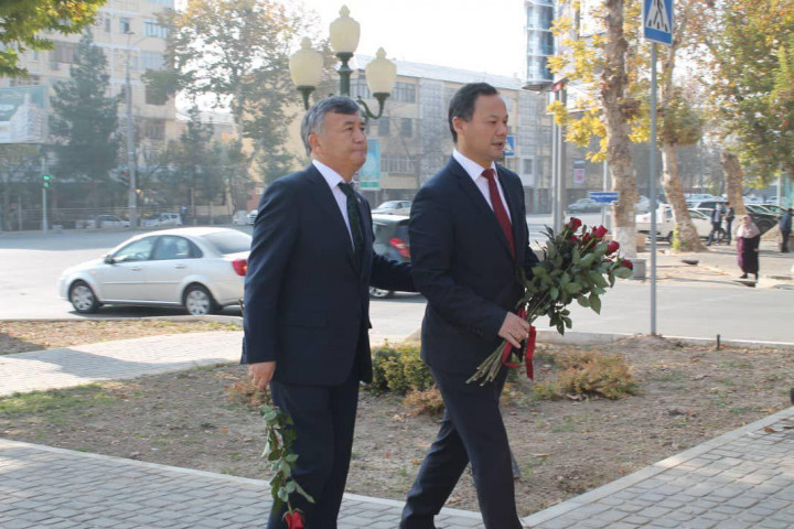 В рамках рабочего визита Р.Казакбаев возложил цветы к барельефу великого кыргызского писателя Чингиза Айтматова, расположенному на одноименной улице в городе Ташкент.