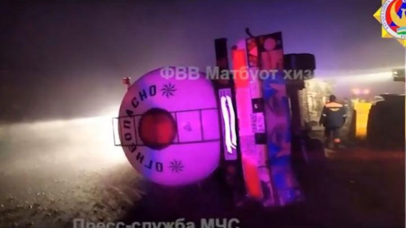 Инцидент произошел ранним утром 4 декабря на 196 км международной автодороги Ташкент – Ош. Водитель автомобиля «MAN» вёз в Фергану 24-тонную ёмкость с пропаном. На вышеуказанном участке дороги водитель потерял управление, в результате чего грузовик с прицепом опрокинулся на бок. В течение 10 минут на место событий прибыли отряды специального поискового, пожарно – спасательного Управления «Камчик» МЧС.