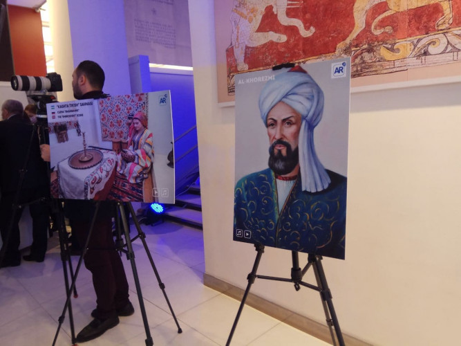 Гости конгресса могут увидеть картины с дополненной реальностью. Как рассказал нам менеджер проекта Евгений Сорочин, при наличии специального приложения можно навести камеру смартфона на картину и увидеть и сфотографироваться с 3D моделью одного из ученых, представленных на картинах - Мирзо Улугбека и Аль Хорезми, а также полководца Амира Темура.