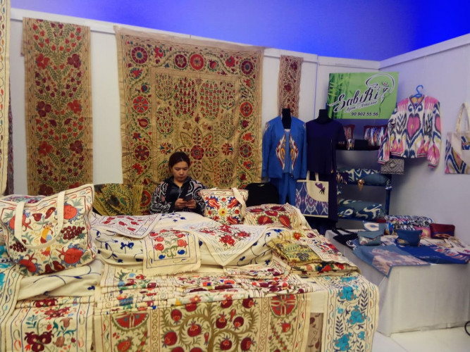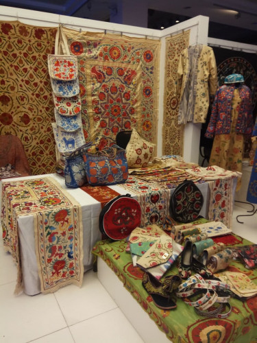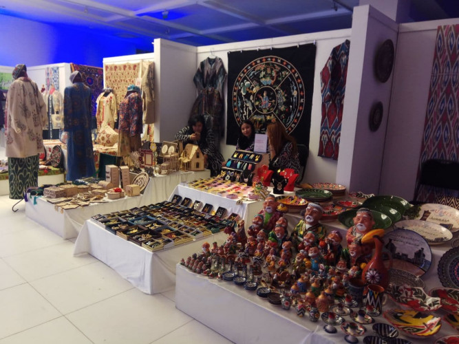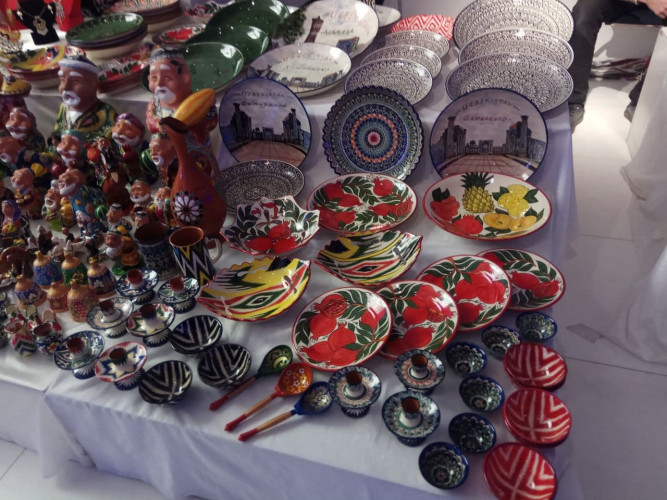 На втором этаже Дворца молодежи, где проходит IV Международный конгресс «Культурное наследие Узбекистана – фундамент нового Ренессанса», свою продукцию по традиции представили ремесленники Узбекистана.