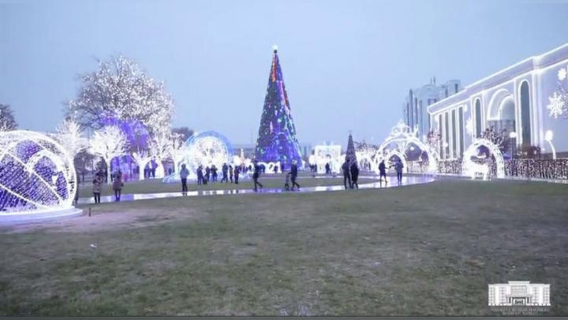 С 20 декабря на улице Истиклол Ташкента (расположенной вблизи Национальной библиотеки Узбекистана) установлена роскошная ёлка и работают детские аттракционы.