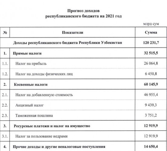 Президент подписал Закон «О Государственном бюджете Республики Узбекистан на 2021 год» (№ ЗРУ–657, 25.12.2020 г.).