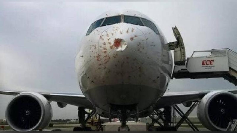 В Турции Boeing 777 столкнулся со стаей птиц при взлете. Самолет получил серьезные повреждения носового обтекателя и приемников воздушного давления.