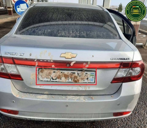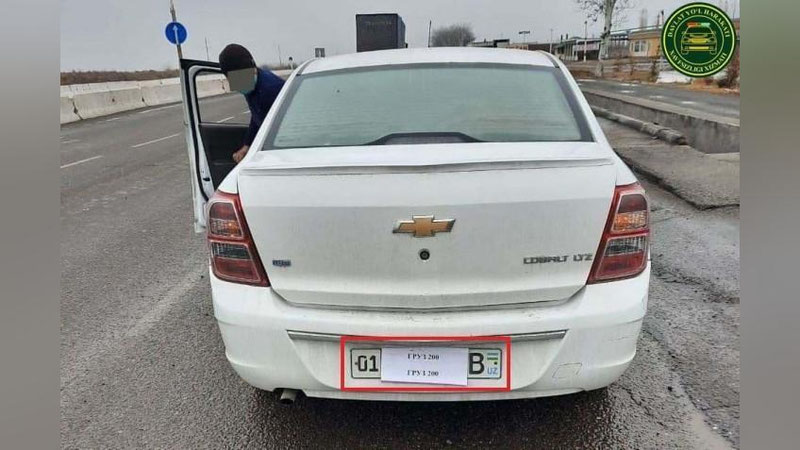 В Джизакской области 7 января на одном из пунктов ДПС сотрудники правоохранительных органов остановили автомобиль Cobalt, на государственном номерном знаке которого была наклеена бумажка с надписью «Груз 200».